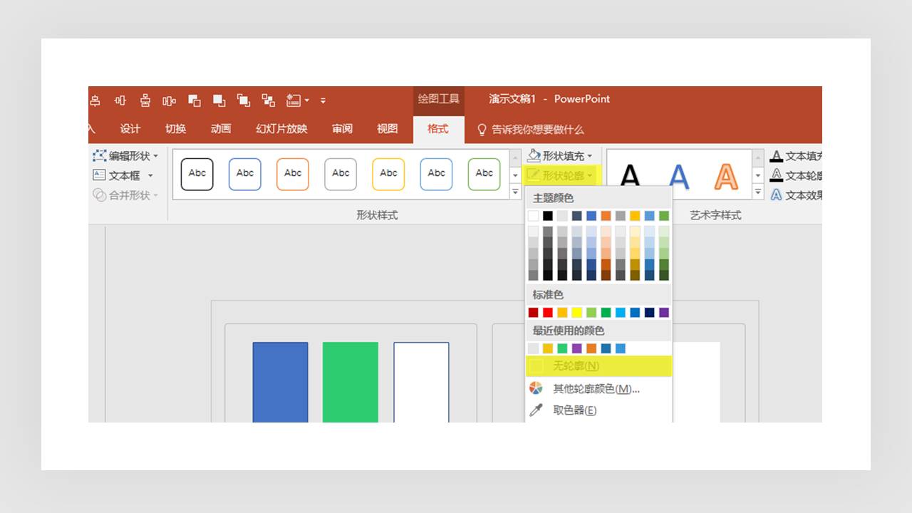 去除形状轮廓的方法是:选中图形,点击菜单栏上的格式,在形状样式选项卡中找到形状轮廓,点开之后选择无轮廓,即可去除。