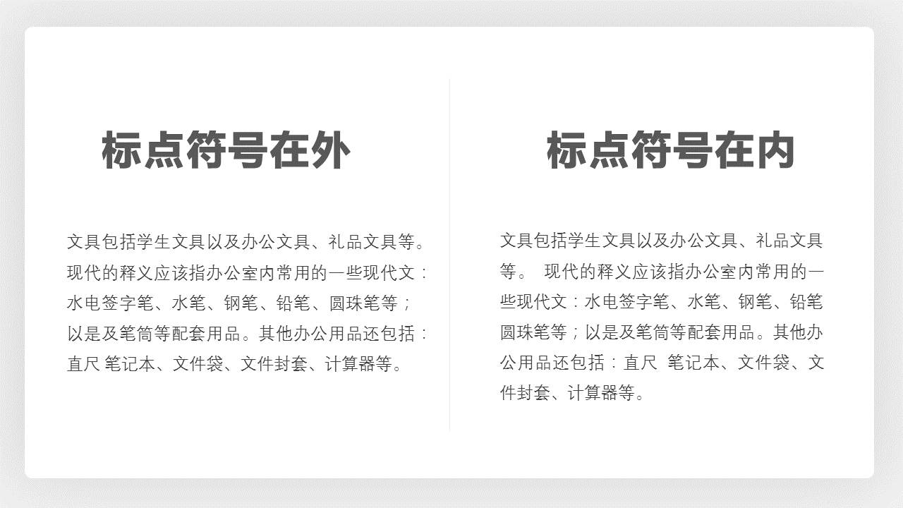通过上图两个案例的对比,大家应该能比较明显地看出两者的区别,即便两组文案都是两端对齐,但标题符号在外的,段落排列就不规整了。
