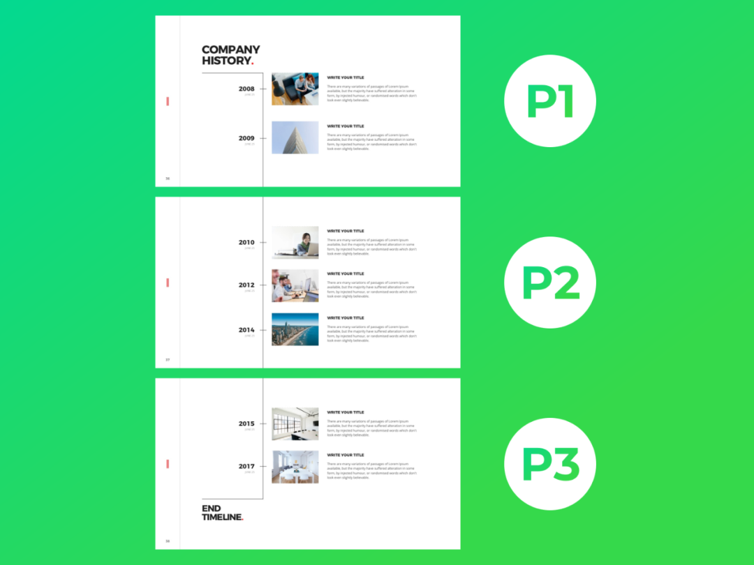 对于拥有多个节点的时间轴页,这个动画也出奇的好用,我们完全可以内容拆分成多页: