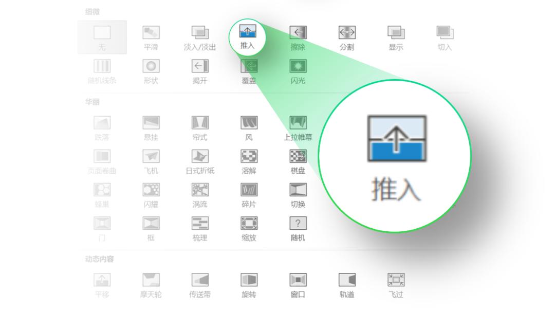 为了页面逻辑更加的通畅,我们就可以为第二页,添加方向「自右侧」的「推入」效果: