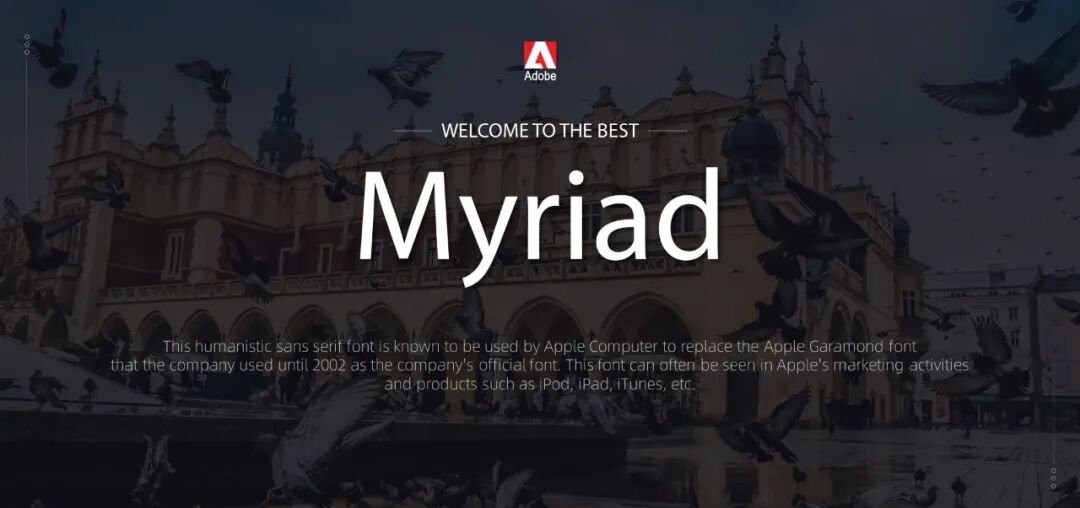 这款人文主义无衬线字体被人熟知的是被苹果电脑公司用来替换掉了公司之前一直沿用至2002年的Apple Garamond字体作为公司的官方字体。该字体可以经常在苹果公司的营销活动和 iPod、iPad、iTunes等产品中看到。