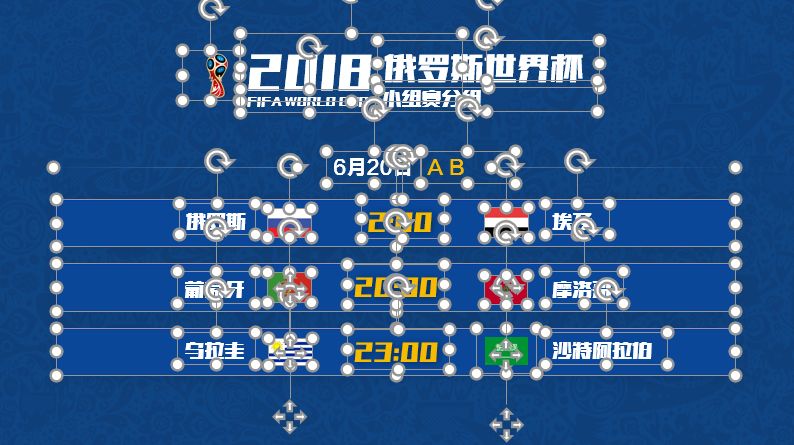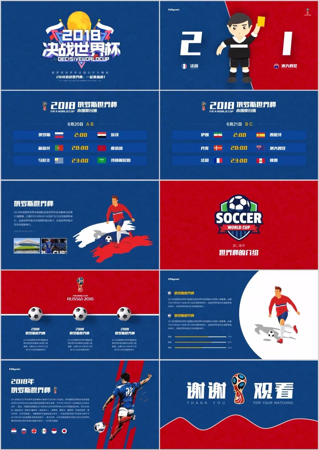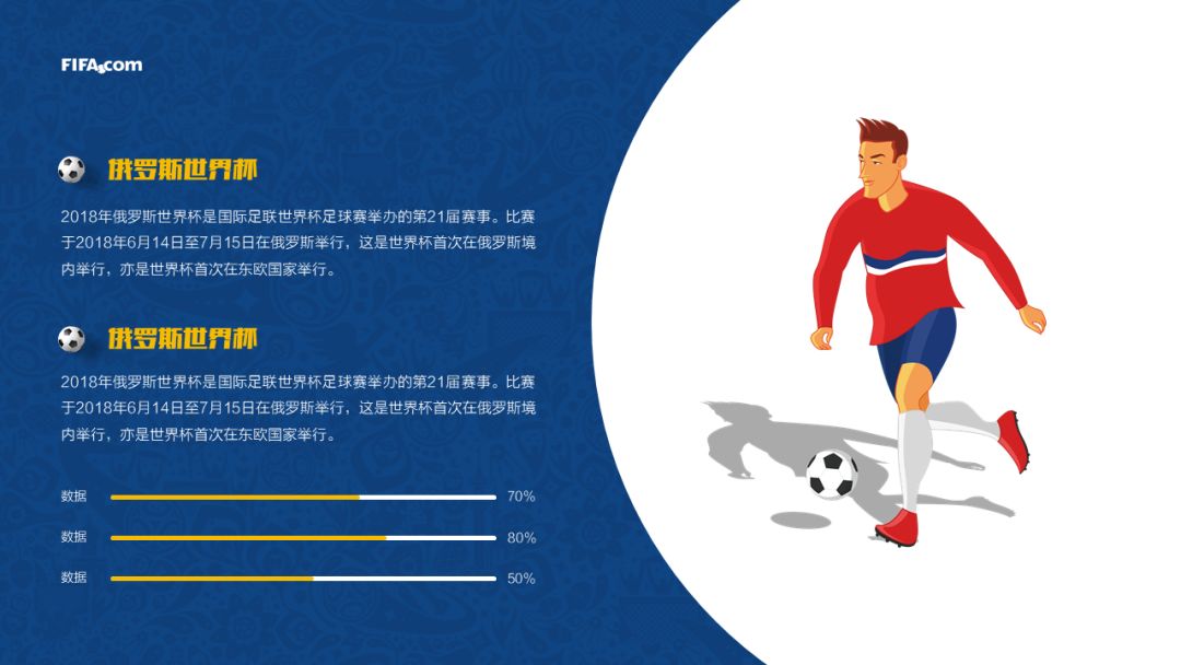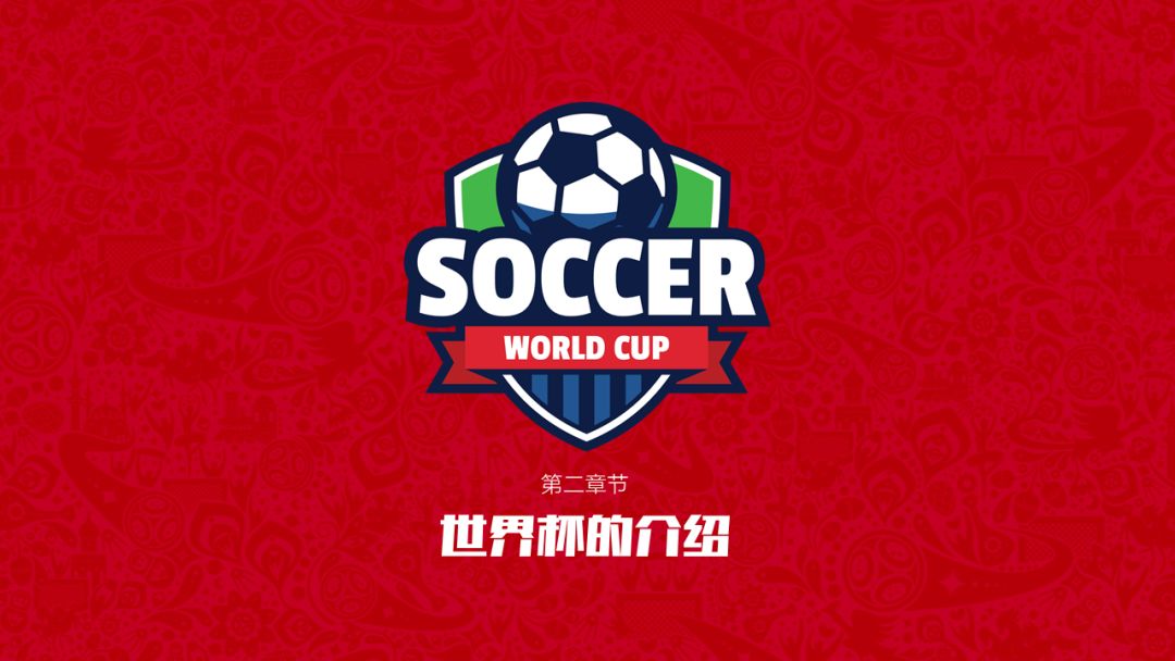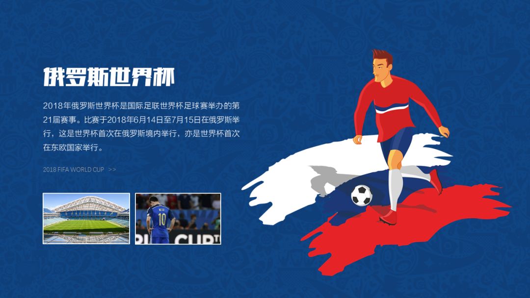 第一张作品是我们的封面页,背景是本次世界杯的主题背景,采用的是纹理设计。
