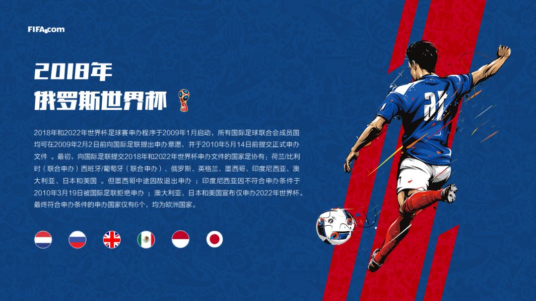 雅客最近也用PPT为本次的世界杯做了一组PPT,这次的PPT使用的是扁平化设计的风格,设计的元素与风格都与本次世界杯相近。