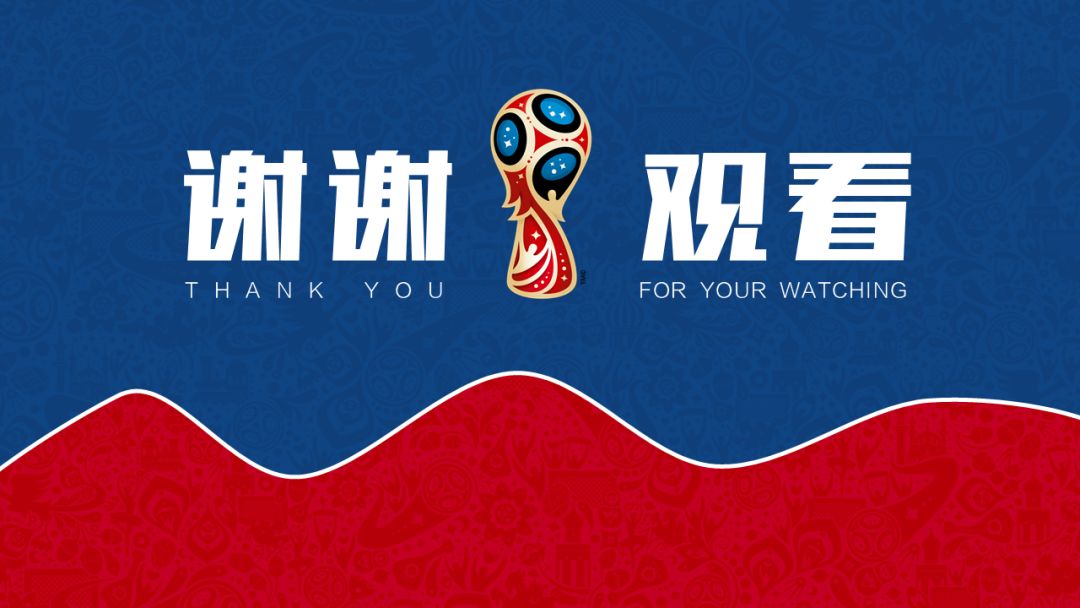 最后一张当然就是我们的结尾页了,结尾页在设计上再次用到了世界杯的LOGO图案,可以起到点题的作用。