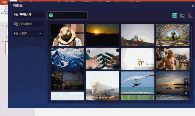 点击【云图库】,然后在搜索栏里面输入想要的图片,点击加号+插入即可使用!