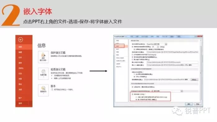▲把字体嵌入到PPT中,这个时候,一般当我们把这个PPT放在别人的电脑中打开时,即便是别人的电脑没有安装我们PPT中所使用的特殊字体我们的作品还是可以得到完整的呈现!