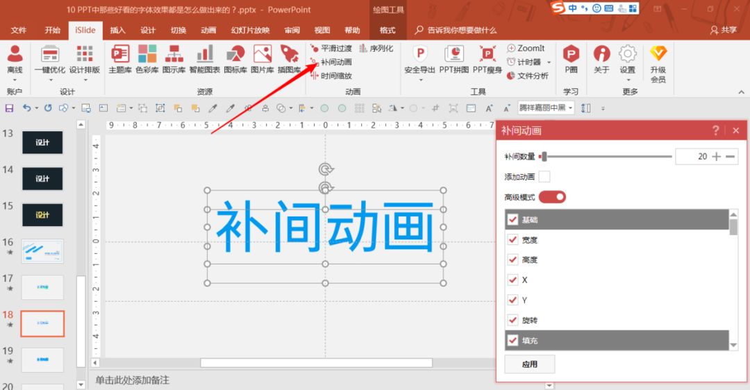 2.利用islide插件进行补间动画设计,调整好具体的补间数量,取消勾选添加动画。