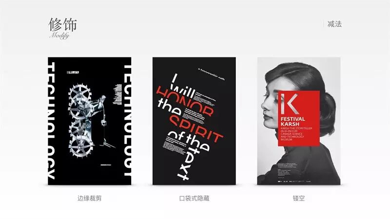 在文案的表现形式中做出裁剪,隐藏或者镂空。