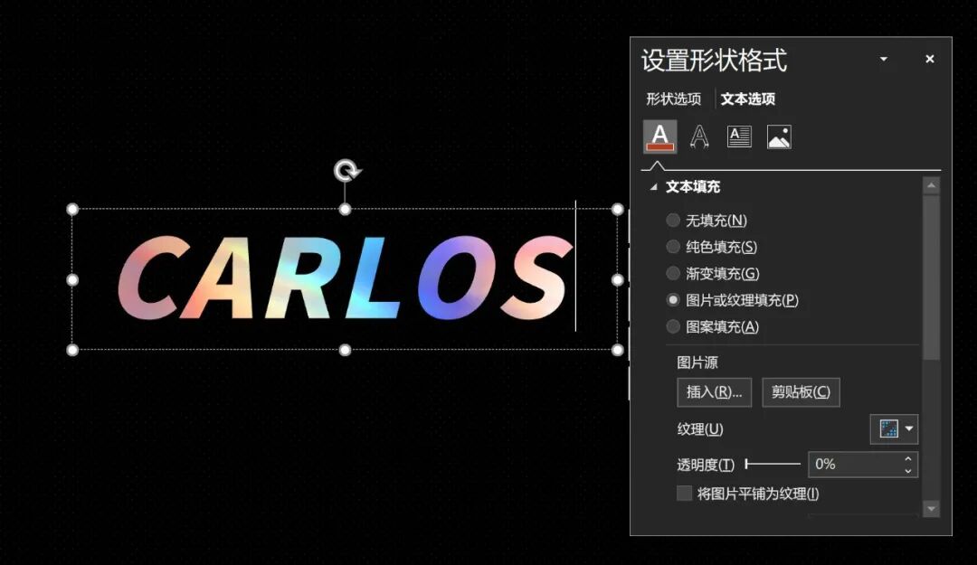 我们先在PPT中插入文本框,输入文字Carlos。这里建议选择比较粗的字体。