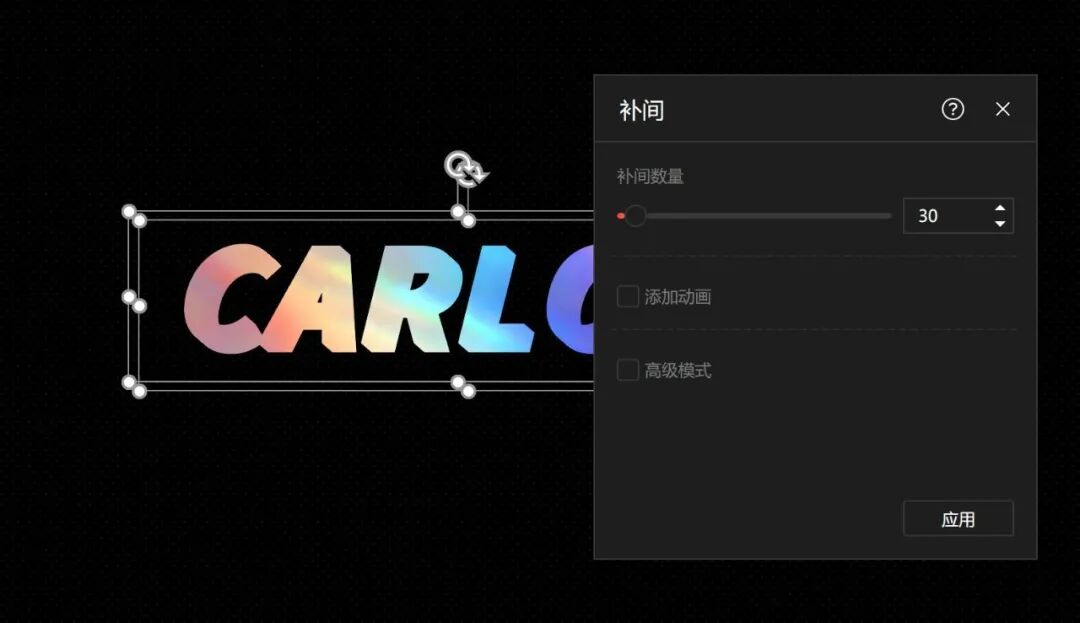 然后全选这两句话,在【islide】插件选项卡中,选择【补间】,步数设置为30步。