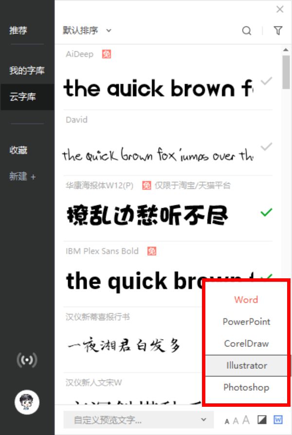 激活成功之后,可以直接在Word、PPT、PS等软件里面找到,也可以在右小角选择平台,然后选中文字之后,直接点字体,就可以更换字体。例如:在Word中更换字体,右下角选中Word平台,然后在Word中选中要改变字体的文字,点击“字由”软件里面的字体即可。
