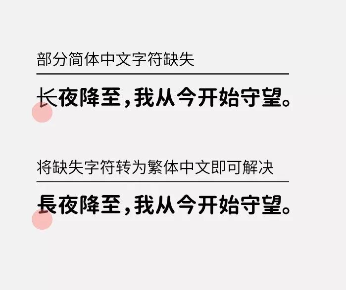 思源柔黑偶尔会出现部分简体中文缺失的情况,遇到这种情况,把缺失的字符转为繁体中文即可解决,但这也决定了思源柔黑只能用于标题字体,同时搭配像思源黑体等字符齐全的字体展示。