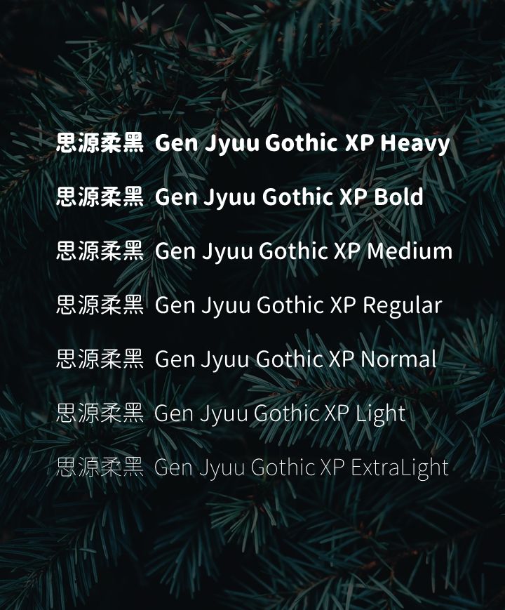 思源柔黑发布了许多版本如标准版、X版、P版、XP版等,各版本的区别在于圆角的圆润程度,每个版本都有七种字重,分别是Heavy、Bold、Medium、Regular、Normal、Light、ExtraLight,使用场景非常广泛。