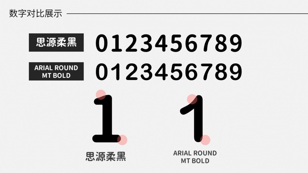 同样地,Arial-Round 的数字比思源柔黑显得更加优美,也更契合「圆柔」这一特点。