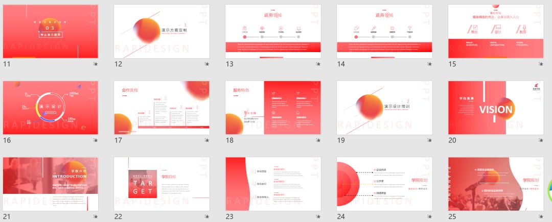 重复原则:整套PPT中,如颜色、形状或字体等某些元素,可以重复使用,而不是所有元素一模一样,呈现大方向上的统一即可。