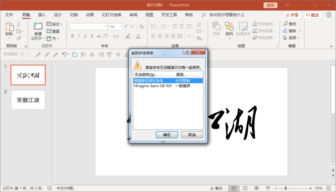 ⑤ 双击保存好的字体安装(会提示替换原来的字体),再次保存嵌入字体的PPT文件时无任何弹窗提示。搞定!