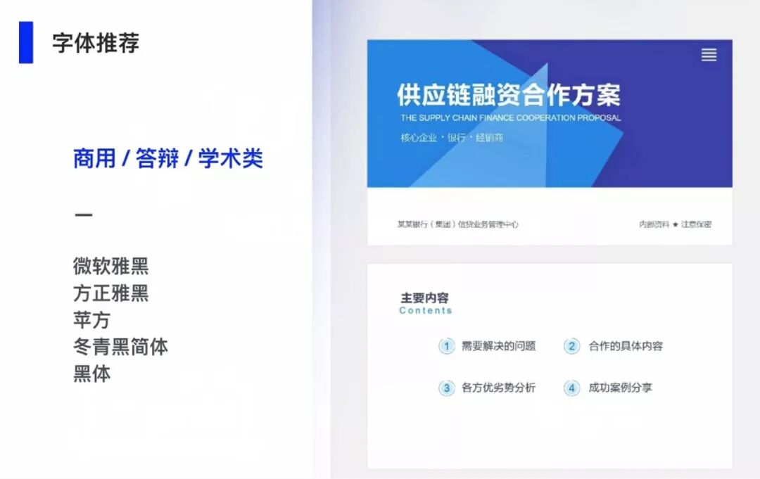 意思就是在PPT中不同类型字体的组合≤2为佳。