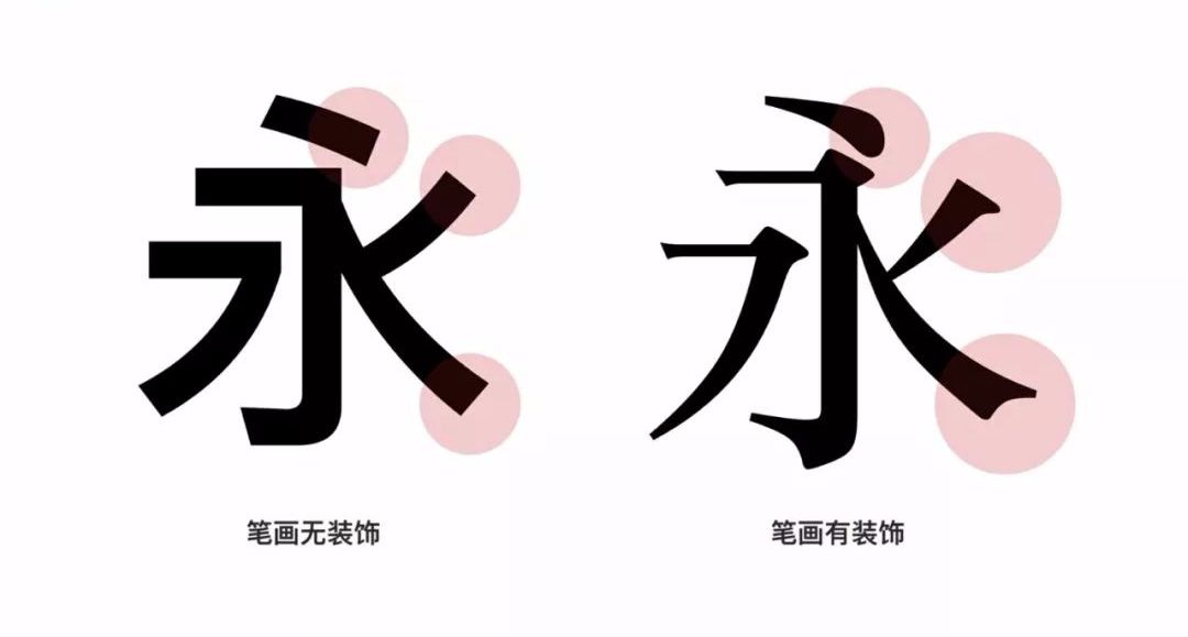 中文字体也是同样的,可以明显看出右边的衬线字体有装饰线。