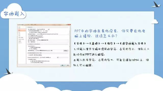 PPT中的字体我有他没有,但又要在他电脑上播放,这该怎么办?