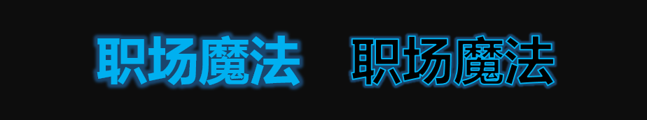 是不是有种灯箱字体的近视感。其实小编就是换了个黑色的背景,给字体添加了一个9磅透明度为60%的发光效果。