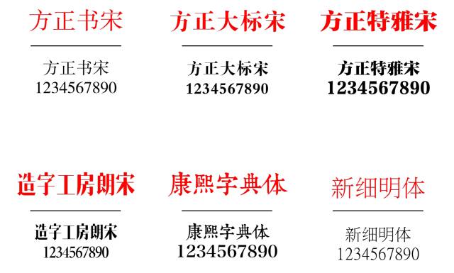 其中比较粗一点的如方正特雅宋、造字工房朗宋和康熙字典体比较适合做标题,其余的比较适合做正文。