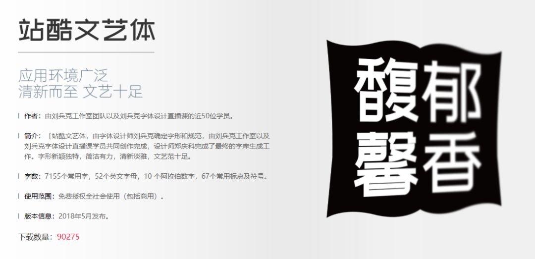 由设计平台站酷网良心提供的免费可商用字体——站酷系列字体,包括:高端黑、酷黑、快乐体、庆科黄油体、文艺体、小薇LOGO体共计 7 种字体。