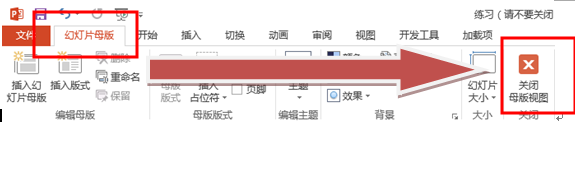 第三步,选择幻灯片母版选项卡---关闭母版视图