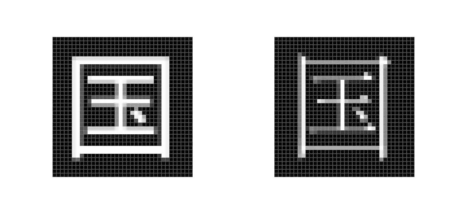 上面这张图是两个30pt大小的文字在幻灯片中的实际显示效果,左边是黑体,右边是宋体。将它们放大后可以很明显的看出,左边的黑体笔画更清晰,而右边的宋体笔画发虚。因为宋体的笔画较细,而且没有足够的像素来表现笔画开始、结束和转角处的装饰。