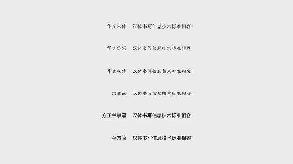 因此,在制作幻灯片时,选择黑体作为主要的字体是比较安全的做法,比如兰亭黑、微软雅黑、苹方等字体都是制作幻灯片时最常用的选择。而宋体、楷体、隶书等字体由于可识别度较低,不建议在幻灯片制作中使用,尤其是正文字体。