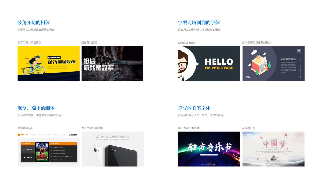 如果你还是不清楚在什么场合使用什么样的字体,那我在这里就总结一些普遍性的规律,下次你就可以参考这些规律,来搭配相应的字体。