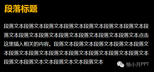 如果PPT的主色是深色,想要强调段落标题,则标题可以采用主色的颜色。效果如下: