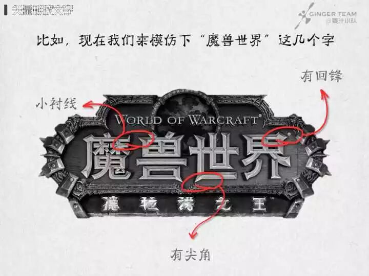 仔细观察魔兽世界的字体,我们发现,小尖角、小衬线、棱台、阴影都是它的特点