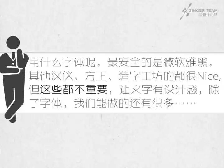 常听人说,做PPT就是在比谁的字体好看,有设计感,但究竟什么是设计感呢?设计感其实就是图像化,所以除了字体,我们依然有很多方法让字体有设计感,所以今儿就来说说字体这点事儿。