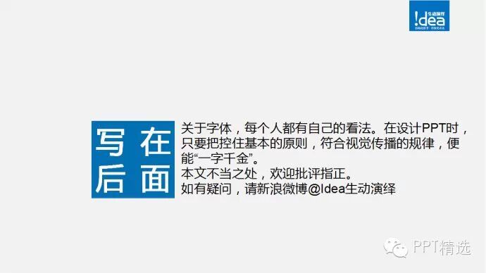 【精选君推荐语:在PPT设计中,有文字、图表、图标、图片,字体是PPT最为核心最为重要的部分,但是现成在读图时代,信息可视化和大图应用是最流行的 PPT设计趋势,很少有人能专注于文字的设计来美化PPT,下面这个PPT就教你如何运用字体的变化来美化PPT,强烈推荐给大家。】