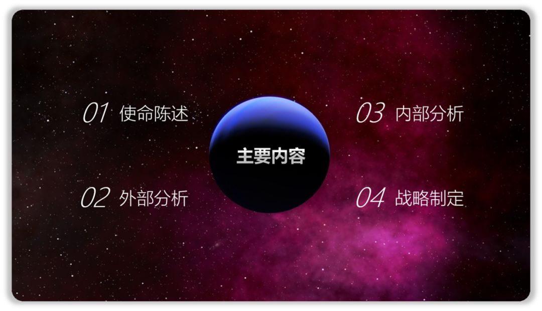 举个例子,比如下面这页PPT使用的背景没有不对,只是这样设计太空,页面没有分量感。