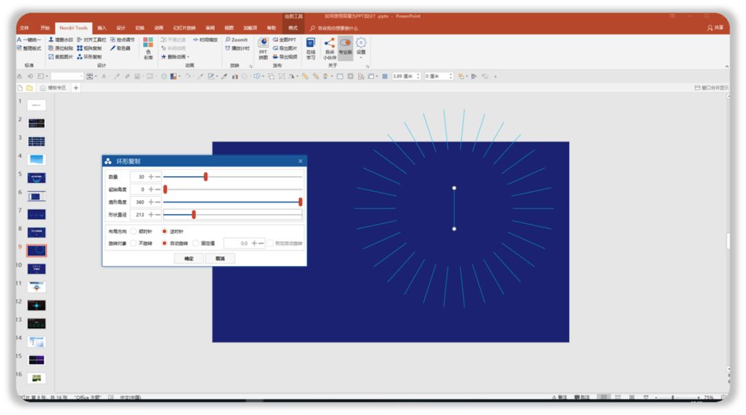 最主要的就是环形线条的设计,这里使用插件完成,如图所示。