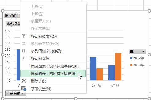 Step 03 单击图表上面任意按钮,右键,隐藏图表上的所有字段按钮。