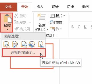 Step 01 复制Excel中的图表,切换到PPT,单击粘贴→选择性粘贴。