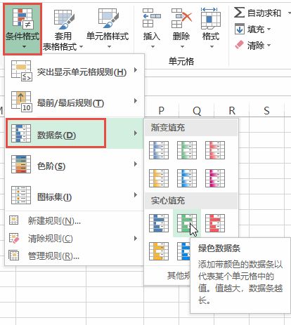 数据条是条件格式中的一个功能,相当于在单元格生成图表。