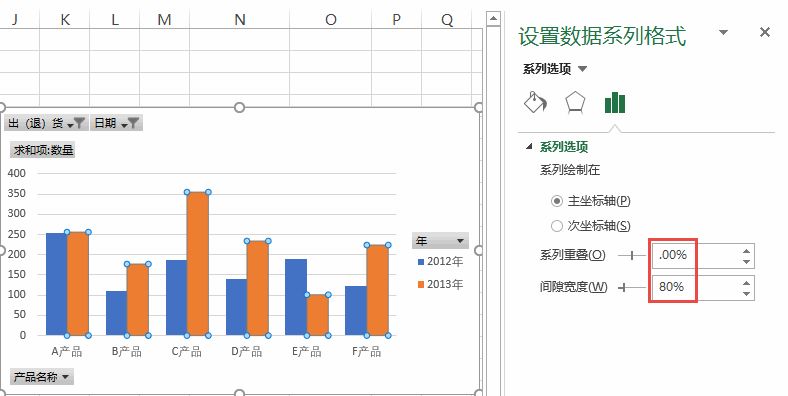 Step 02 单击系列(也就是柱子),右键,设置数据系列格式,系列重叠改为0%,间隙宽度改为80%。