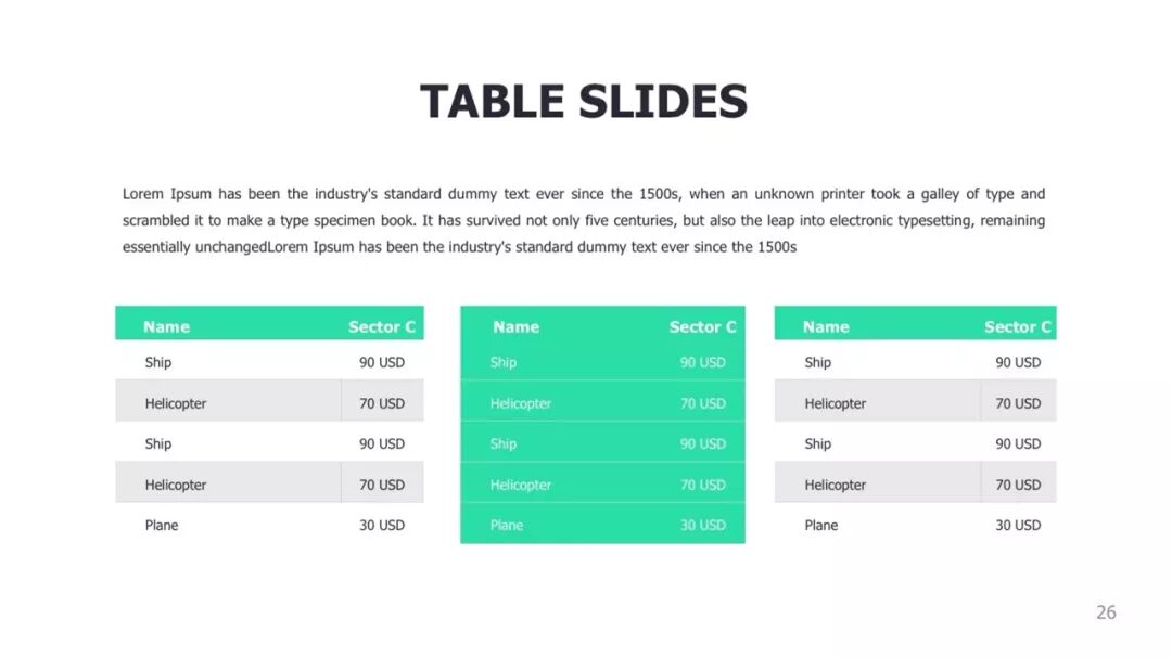 上面这种表格是我们平常最为常见的表格类型,主标题用有颜色的色块加以突出显示,其他部分以颜色作为间隔