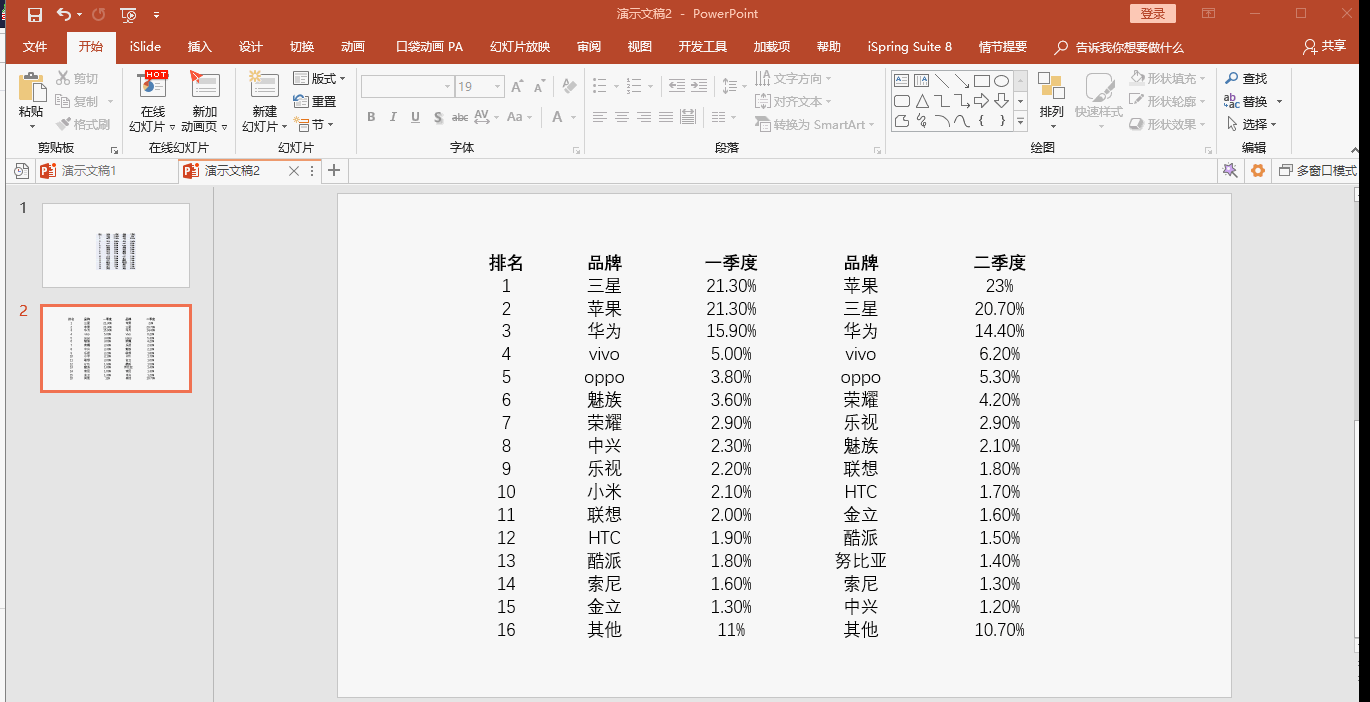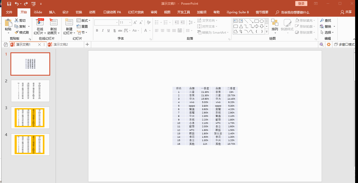 比如说:现在有这么一个表格,我给它粘贴到PPT里