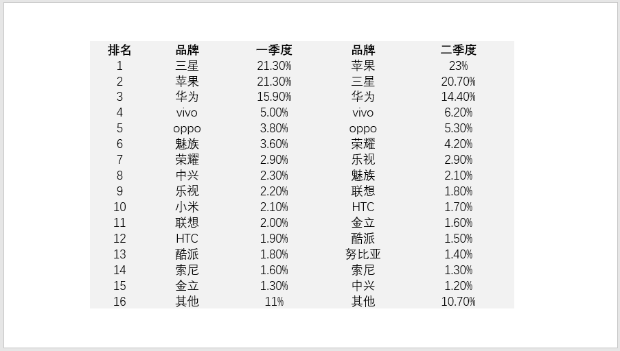 这里把表格的框线设置为无框线、表格底纹为浅灰色、表格的首行字体加粗。