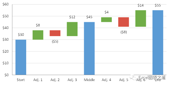 前面都是商业公司出品,PTcharts 则是图表大神 Jon Peltier 的作品,使用VBA开发,提供了多种 Excel 所不具备的图表类型和图表功能,尤其以瀑布图为特色。