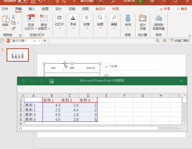 将幻灯片上的表格复制、粘贴到Excel文档中,并关闭Excel文档,删除幻灯片上的表格。