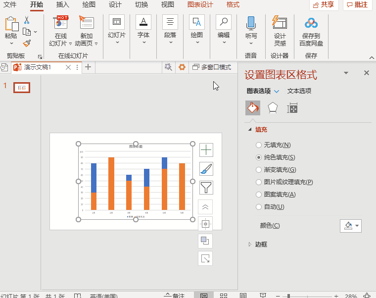 选中条形图,右击选择【设置数据点格式】,将主坐标轴的【系列重叠】设置为100%。