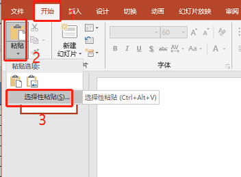 2.打开PPT,【粘贴】—【选择性粘贴】如下图: