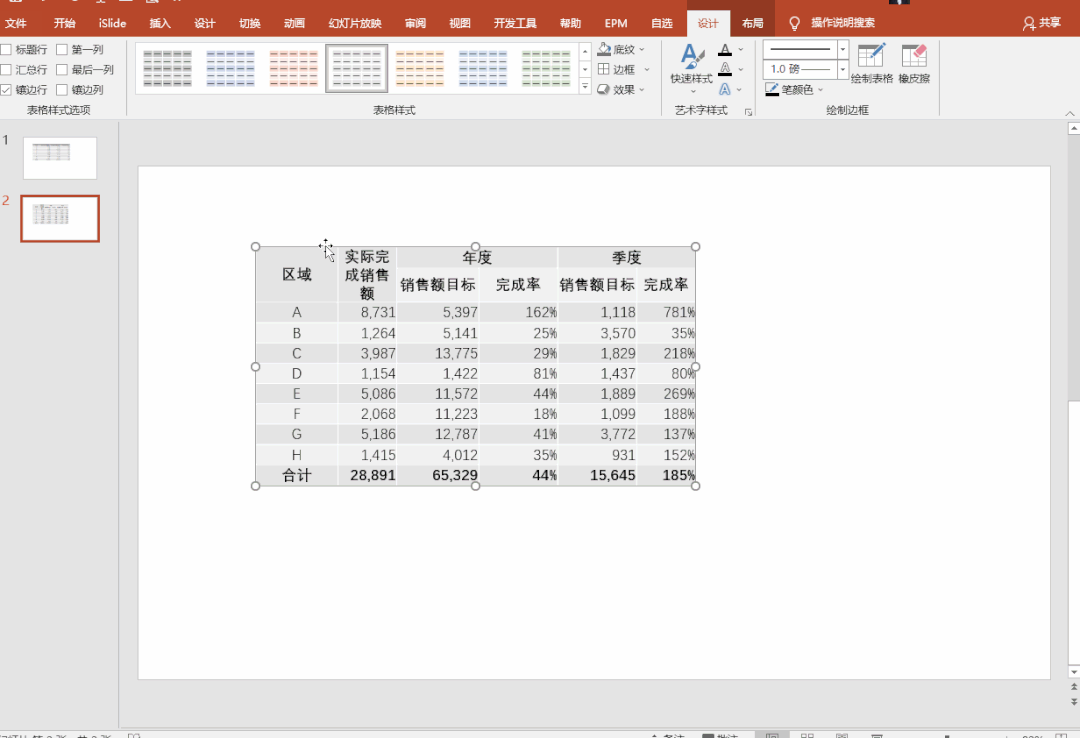 表格快速设置镶边行等