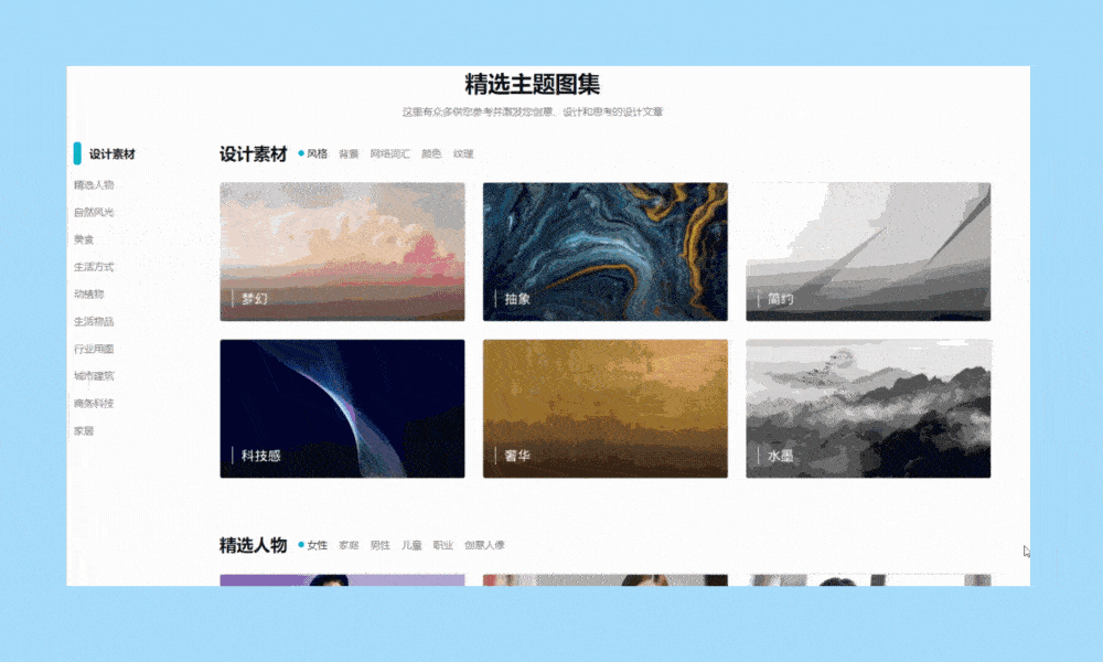Canva可画图库中拥有数百万张高清正版图片,主要来源于Getty Images、Pexels以及Pixabay等合作伙伴,覆盖绝大多数图片种类。