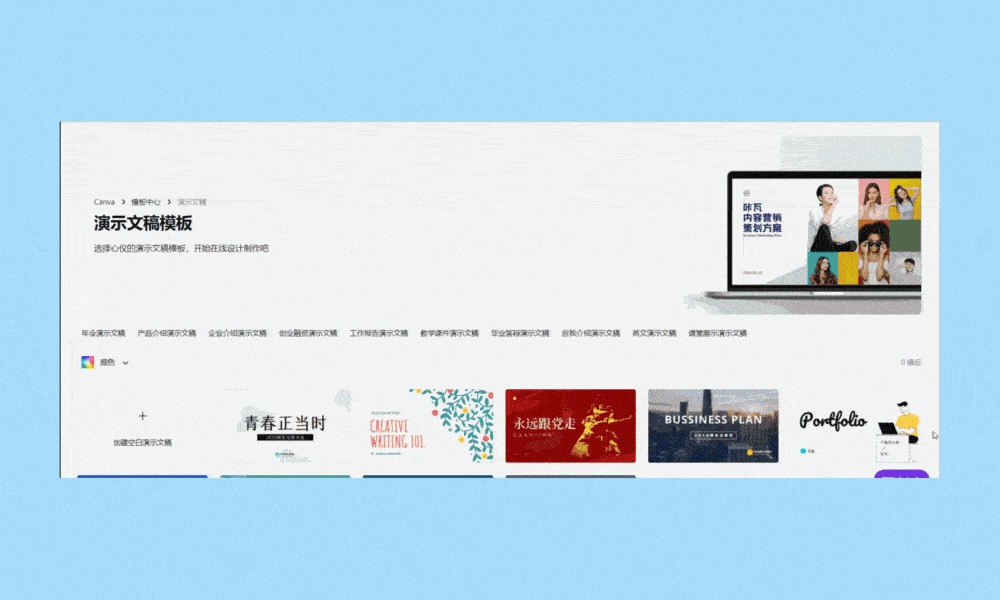 Canva可画提供了海量精美原创PPT设计模板,覆盖教育培训、金融理财、商业提案、品牌路演、教学课件以及个人作品集等主题的设计需求。